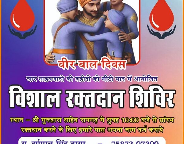 Raigarh: साहिबज़ादों की शहादत को समर्पित रक्तदान शिविर कल