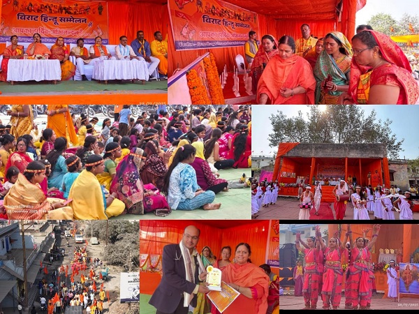 प्रातः लगभग 08ः30 बजे भव्य कलष यात्रा निकाली गई, जिसमें हजारों माताएँ, बहनें शामिल हुईं। इसके पष्चात पंचकुण्डीय गायत्री महायज्ञ का आयोजन किया गया। सम्मेलन की मुख्य अतिथि एवं प्रवक्ता साध्वी प्रज्ञा भारती दीदी जी ने अपने उद्बोधन में कहा कि भारत की एकता, अखण्डता के लिए हिन्दुओं का संगठित होना आवष्यक है। उन्होंने अखण्ड भारत की महानता, सनातन संस्कृति की गहन परंपराओं, सामाजिक एकता और राष्ट्र निर्माण के मूल्यों को सषक्त रुप में प्रस्तुत किया। यह हिन्दू विराट सम्मेलन हिन्दू समाज को एकजुट रहकर समरस, नैतिक और अनुषासित जीवन जीने की प्रेरणा देता है। उन्होंने आह्वान किया कि हम अपनी संस्कृति, संस्कारों को केवल ग्रंथो तक सीमित न रखें बल्कि आचरण में उतारें। समाज में समरसता और राष्ट्र के प्रति कर्तव्य ही सनातन की सच्ची साधना है। उन्होंने ‘‘यत्र नार्यस्तु पूज्यन्ते रमन्ते तत्र देवता’’ की भावना पर नारी सषक्तिकरण पर भी जोर दिया।