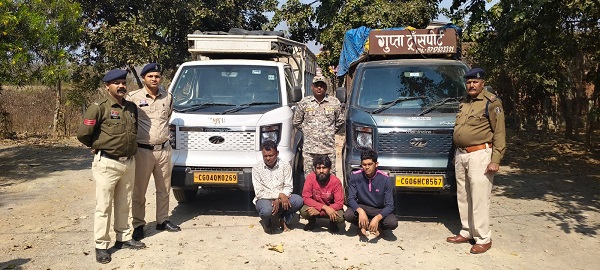 मामले का सक्षिप्त विवरण इस प्रकार हैं कि दिनाक 26/02/2026 को सूचना मिला कि दो नग वाहन 01. महेन्द्रा वीरो स्लेटी कलर का क्रमांक CG 06-HC-8567, 02. महेन्द्रा वीरो सफेद रंग का क्रमांक CG 04-QM-0269 में भैंस एवं भैंसा मवेशी को क्रुरता पूर्वक भरकर बिलाईगढ तरफ से उडीसा ले जा रहे है कि सूचना पर थाना प्रभारी पुरेन्द्र मल्होत्रा के हमराह सउनि.देवनारायण साहू आरक्षक 68,388,283,254,271 के घेराबंदी कर वाहन 01. महेन्द्रा वीरो स्लेटी कलर क्रमांक CG 06-HC-8567, 02. महेन्द्रा वीरो सफेद रंग क्रमांक CG 04-QM-0269 को पकड़ने से महेन्द्रा वीरो वाहन क्रमांक CG 06-HC-8567 में 02 नग भैंस 03 नग भैंसा तथा दुसरे वाहन महेन्द्रा वीरो क्रमांक CG 04-QM-0269 में 02 नग भैंस 03 नग भैंसा कुल 10 नग ठुस ठुस कर क्रुरता पूर्वक भरा था जिस सम्बंध में चालक सूरज गुप्ता तथा दुसरे वाहन के चालक भीखम सिन्हा ने भैंस भैंसा मवेशी को उडीसा राज्य ले जाना बताये जिन्हें नोटिस देने पर वाहन में मवेशी परिवहन करने के सम्बंध में वैध दस्तावेज नहीं होना लिखित में दिये मौके पर देहाती नालसी लिया गया वाहन चालको सूरज गुप्ता, भीखम सिन्हा एवं केबिन में बैठे कबीर खान का मेमोरेंण्डम कथन लेकर वाहन महेन्द्रा वीरो क्रमांक CG 06-HC-8567 एवं महेन्द्रा वीरो क्रमांक CG 04-QM-0269 में 05-05 नग भैंस, भैंसा मवेशी भरे किमती 1730000/रूपये तथा 04 नग मोबाईल फोन किमती 16300/रूपये जुमला किमती 1746300/रूपये को सूरज गुप्ता, भीखम सिन्हा, कबीर खान से जप्ती किया गया। आरोपीयों के द्वारा अपराध धारा 4,6,10 छ.ग. कृषिक पशु परिरक्षण अधिनियम 2004, पशुओं के प्रति क्रुरता का निवारण अधिनियम 1960 की धारा 11(घ) का अपराध घटित करना पाये जाने से आरोपीयों के विरूध्द अपराध पंजीबध्द कर विवेचना में लिया गया। दौरान विवेचना 01- सूरज गुप्ता पिता भगवान प्रसाद गुप्ता उम्र 42 साल साकिन कोमाखान सुवरमाल थाना कोमाखान जिला महासमुंद 02. भीखम सिन्हा पिता पुरूषोत्तम सिन्हा उम्र 25 साल साकिन बिहाझर थाना बागबहरा जिला महासमुंद 03. कबीर खान पिता रहीस खान उम्र 25 साल साकिन सागंज अर्जुन नगर चौराहा थाना सागंज जिला आगरा उत्तरप्रदेश हाल मुकाम ट्रांसपोर्ट नगर पार्किंग नं 04 चांद होटल के पास थाना बंजारी जिला रायपुर छ.ग. से पुछताछ कर मेमोरण्डम कथन लिया गया जो अपराध घटित करना स्वीकार करने पर आज दिनांक 26/02/26 को गिरप्तार कर गिरफतारी की सुचना उसके परिजन को देकर माननीय जेएमएफसी न्यायालय बिलाईगढ़ पेश कर रिमाण्ड पर भेजा गया है। जिसमें अन्य आरोपी की संलिप्तता होने की संभावना है।