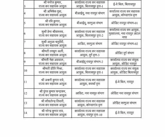 वाणिज्यिक कर विभाग में बड़ा फेरबदल: 16 अफसरों का तबादला, नई जिम्मेदारियां मिलीं