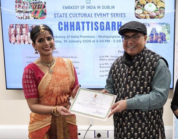 रायपुर, 21 जनवरी 2026। आयरलैंड की राजधानी डबलिन में भारत की सांस्कृतिक विविधता की एक सशक्त झलक देखने को मिली, जब स्टेट कल्चरल इवेंट सीरीज़ के तहत भारतीय दूतावास, डबलिन द्वारा छत्तीसगढ़ राज्य पर केंद्रित भव्य सांस्कृतिक आयोजन का सफल आयोजन किया गया। इस कार्यक्रम में आयरलैंड में रह रहे भारतीय समुदाय के सदस्यों ने भी उत्साहपूर्वक सहभागिता की।