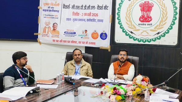 रायगढ़, 2 जनवरी 2026/ जिले में प्रधानमंत्री सूर्य घर मुफ्त बिजली योजना के प्रभावी क्रियान्वयन सुनिश्चित करने के लिए आज जिला कलेक्ट्रेट स्थित सृजन सभाकक्ष में समीक्षा बैठक आयोजित की गई। बैठक में बैंक प्रतिनिधियों, वेंडर्स एवं विद्युत विभाग के अधिकारियों ने सहभागिता की। कलेक्टर मयंक चतुर्वेदी के निर्देशानुसार जिला पंचायत सीईओ श्री अभिजीत बबन पठारे ने योजना की प्रगति की विस्तार से समीक्षा की और आवश्यक दिशा-निर्देश दिए। जिला पंचायत सीईओ ने स्पष्ट शब्दों में कहा कि योजना शासन की प्राथमिकता में शामिल है, ऐसे में इसके क्रियान्वयन में किसी भी प्रकार की लापरवाही बर्दाश्त नहीं की जाएगी। उन्होंने सभी वेंडर्स को निर्देशित किया कि वे अपने-अपने क्षेत्र में सौर पैनल इंस्टॉलेशन कार्य में तेजी लाएं तथा प्रति सप्ताह न्यूनतम 10 इंस्टॉलेशन का लक्ष्य निर्धारित कर कार्य पूर्ण करें। साथ ही चेतावनी दी कि कार्य में लापरवाही बरतने वाले वेंडर्स के विरुद्ध सख्त कार्रवाई की जाएगी।