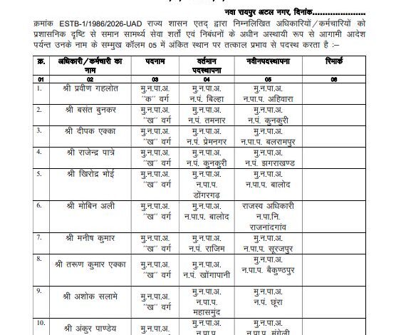 Chhattisgarh: प्रशासन विभाग में बड़ा फेरबदल, 20 CMO समेत 37 अधिकारियों को किया गया इधर से उधर