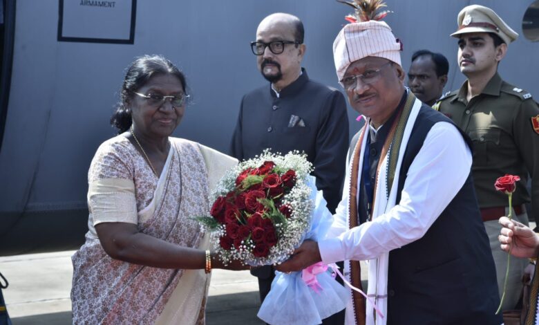 राष्ट्रपति द्रौपदी मुर्मु का जगदलपुर आगमन: राज्यपाल रमेन डेका और मुख्यमंत्री विष्णुदेव साय ने मां दंतेश्वरी एयरपोर्ट पर किया आत्मीय स्वागत