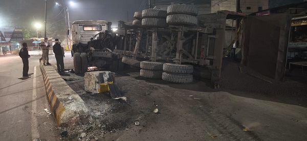 देर रात चक्रधरनगर चौंक पर पल्टी आयरन गोली ओव्हर लोड ट्रेलर वाहन, चक्रधरनगर पुलिस की त्वरित कार्रवाई, रात में ही मार्ग से हटवाया गया बिखरा आयरन पेलेट