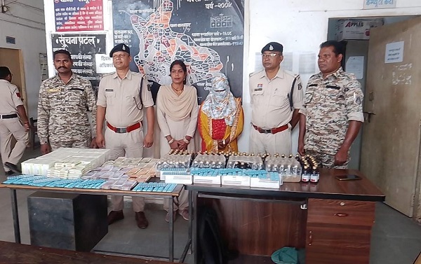 इसी कड़ी में बीती रात मुखबिर की सूचना पर थाना प्रभारी रोहित बंजारे के नेतृत्व में टीम ने दुर्गापुर लारीपानी निवासी धनुर्जय यादव के मकान की घेराबंदी की। छापेमारी में धनुर्जय यादव घर पर नहीं मिला, लेकिन उसकी पत्नी तिलोत्तमा यादव (उम्र 25 वर्ष) घर में मौजूद मिली। तलाशी में उसके घर पर मिले नशीली दावों के जखीरा को लेकर पूछताछ करने पर महिला ने स्वीकार किया कि वह अपने पति के साथ मिलकर नशीली दवाओं की बिक्री करती है। गवाहों की मौजूदगी में घर की तलाशी लेने पर पुलिस ने भारी मात्रा में नशीली दवाएं और नशीली दावों की अवैध बिक्री से अर्जित नगदी जब्त की।