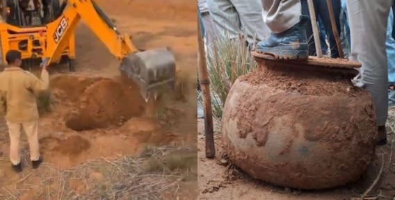 सूचना के बाद JCB से खुदाई शुरू की गई। जैसे-जैसे मशीन 15 फीट नीचे पहुंची, वहां से एक बड़ी देगनुमा वस्तु दिखाई देने लगी।