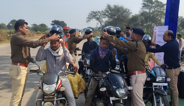 Raigarh News: रायगढ़ पुलिस का यातायात जागरूकता अभियान; NH-49 पर बिना हेलमेट चालकों का कटा चलान, बांटे 200 हेलमेट