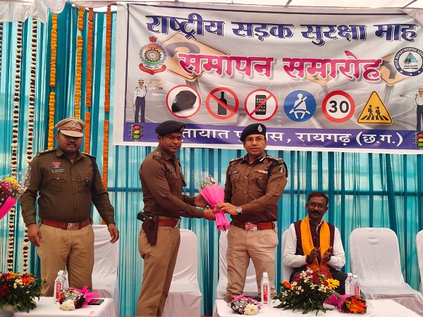 Raigarh News: राष्ट्रीय सड़क सुरक्षा माह 2026 का पुलिस सामुदायिक भवन प्रांगण में भव्य समापन, विद्यार्थियों को पुरस्कार व प्रशस्ति पत्र देकर किया गया उत्साहवर्धन
