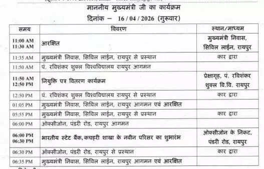 कार्यक्रम के बाद मुख्यमंत्री दोपहर 1:05 बजे सिविल लाइन स्थित अपने निवास लौटेंगे। यहां वे कुछ समय प्रशासनिक कार्यों में व्यस्त रहेंगे। सूत्रों के मुताबिक, इस दौरान कई महत्वपूर्ण फाइलों पर निर्णय भी लिया जा सकता है, जिससे शासन से जुड़े बड़े फैसलों के संकेत मिल रहे हैं।
