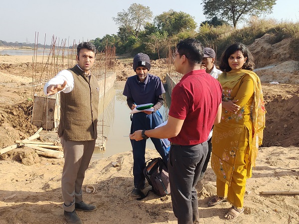 रायगढ़, 8 जनवरी 2026/ रायगढ़ जिले के विकासखण्ड खरसिया अंतर्गत माण्ड नदी पर स्थित चपले एनीकट में संचालित हाईड्रो पंपिंग आधारित सिंचाई कार्य का आज कलेक्टर श्री मयंक चतुर्वेदी द्वारा निरीक्षण किया गया। निरीक्षण के दौरान भारतीय विज्ञान संस्थान (आई.आई.एस.सी.) बैंगलुरू के प्रोफेसर श्री पुनित सिंह, कार्यपालन अभियंता जल संसाधन संभाग श्री होमेश नायक, संबंधित अनुविभागीय अधिकारी, तकनीकी अमला एवं बड़ी संख्या में ग्रामवासी उपस्थित रहे।