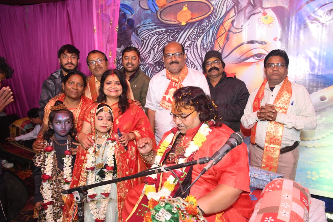 व्यास पीठ पर बैठे पंडित श्री श्री भारत भूषण शास्त्री ने जहां एक और कथा वाचन की भक्ति पूर्ण जिम्मेदारियो का निर्वहन कर रहे हैं, वहीं दूसरी ओर आज उन्होंने अचानक ही इस पूरे आयोजन मैं अपनी छोटी सी भूमिका निभाने वाले विमल चौधरी की तारीफ करते हुए उनकी माता श्रीमती इंदिरा चौधरी और पत्नी श्रीमती रानी चौधरी को मंच पर बुलाकर सम्मानित किया।