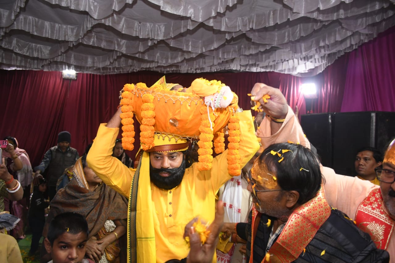इस पवित्र आयोजन के जजमान सुदेश लाला और उनकी पत्नी चंद्रकांता लाला अपनी नम आंखों से जहां एक और अपने लल्ला को निहारते रहे वहीं दूसरी ओर नाचते हुए उनका स्वागत करते रहे ।