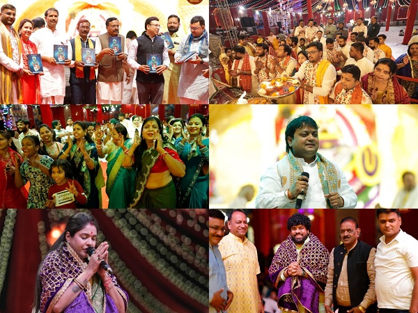 देश के भजन गायकों ने बांधा समां – – कृतार्थ – 4 भजन संध्या आयोजन में शिरकत किए देश के नामचीन भजन गायक सौरभ शर्मा (कोलकाता), शीतल पांडेय (दिल्ली),रेशमी शर्मा (समस्तीपुर) व स्थानीय कलाकार संजय अग्रवाल (कोसा) व आयुष अग्रवाल ने बाबा श्री श्याम के एक से बढ़कर एक मधुर भजन गीतों से उपस्थित हजारों लोगों को झूमने के लिए विवश कर दिया और लगभग तीन बजे रात तक लोग मधुर भजन गीतों के संग निहाल होकर झूमते रहे जो हर किसी के लिए यादगार बन गया।