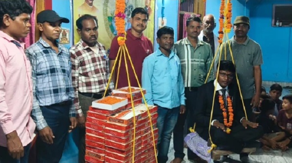Raigarh: ‘नवोदय गुरु’ टिकेश्वर पटेल का अभूतपूर्व सम्मान: सैकड़ों पालकों ने लड्डू से तौलकर 21,000 और स्मृति चिन्ह भेंट किए