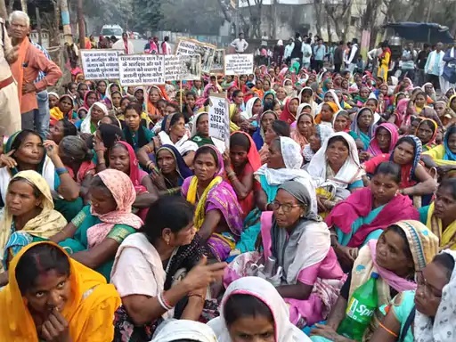 ठंड के बावजूद धरने पर डटे हैं ग्रामीण