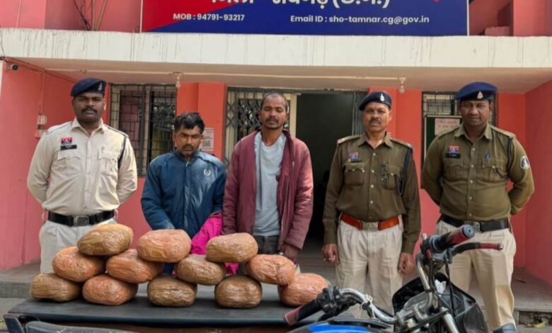 दोनों आरोपियों को एनडीपीएस एक्ट की वैधानिक जानकारी देकर तलाशी लेने पर उनके कब्जे से प्लास्टिक बोरी में अलग-अलग पैकेटों में रखा कुल 12.410 किलोग्राम मादक पदार्थ गांजा, जिसकी अनुमानित कीमत 70,000 रुपये है, बरामद किया गया। इसके अलावा आरोपियों के कब्जे से बिना नंबर की स्प्लेंडर प्लस मोटरसाइकिल कीमत 27,000 रुपये तथा वीवो कंपनी का मोबाइल फोन कीमत 10,000 रुपये जब्त किया गया। पुलिस द्वारा बरामद मादक पदार्थ, मोटरसाइकिल और मोबाइल को विधिवत जप्त कर आरोपियों के विरुद्ध थाना तमनार में अपराध क्रमांक 44/2026 धारा 20(बी) एनडीपीएस एक्ट के तहत मामला दर्ज कर दोनों आरोपियों को गिरफ्तार कर न्यायिक रिमांड पर भेजा गया है।